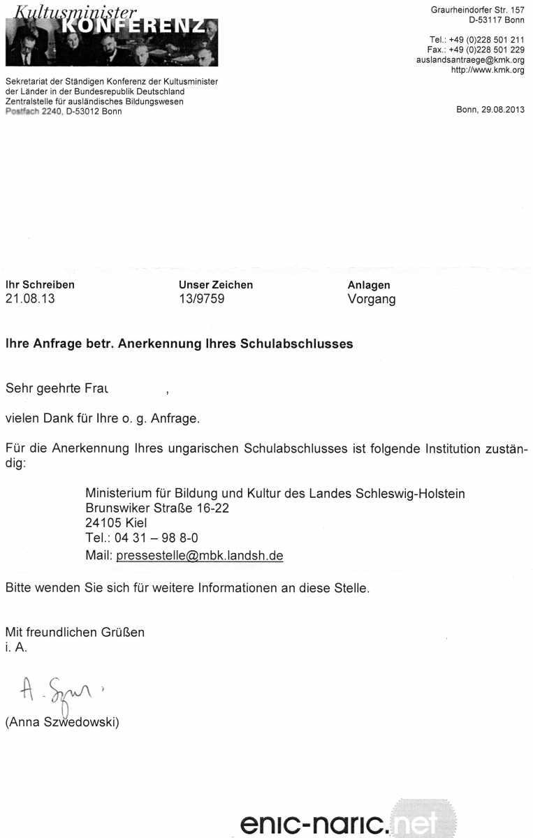 Akkor most mi a gond? Most van egy címed Kielben ahol intézik!bakmacska írta: Visszaérkezett az elbírálás iránti kérelem Bonn-ból , mert itt a megyeszékhelyen személyes megkeresésem után sem reagálnak a bizonyítvány elismerésére.